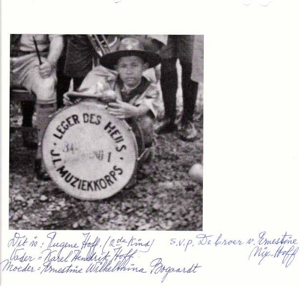 Naar aanleiding van uw schrijven dd 24 Aug. ’83, brief m.50 2264/82 deel ik u het volgende mede: Dat Ernestiene Wilhelmiene Bogaardt, was mijn oudste zuster en ook het oudste kind van een familie van acht. Ik ben de jongste v.d. familie. Mijn oudste zuster was eerst getrouwd met een zekere mijnheer Hof. Van dit huwelijk hadden zij twee kinderen t.w Tineke (meisje) en Eugene (jongen). Haar tweede huwelijk was met Carel Doppert. Tijdens Carel Dopperts pensionering woonden zij in Trengalek (Kediri). Ik was toen 8 jaar oud en leefde met mijn ouders in Modjokerto en zag mijn zuster terug toen ik 17 jaar oud was. Bij de ontmoeting met mijn zuster maakte ik kennis met twee jonge meisjes. Ik schat dat het oudste meisje 3 en ½ jaar oud was en haar naam was Tieneke. De jongste was ongeveer 1 ½ jaar oud en haar naam onbekend. Ook maakte ik kennis met een zeker mijnheer Mol. Mijnheer Mol, mijn zuster en de twee kinderen hebben in Djapanan, district Djempol gewoond. Hierna zag ik mijn zuster niet meer. Van wijlen mijn moeder heb ik vernomen dat mijn oudste zuster tijdens de Japanse bezetting overleden was (Waarschijnlijk in Bandoeng, West Java). Dit zijn de gegevens die ik kan geven over mijn zuster. Achtend, Charles E. Bogaardt